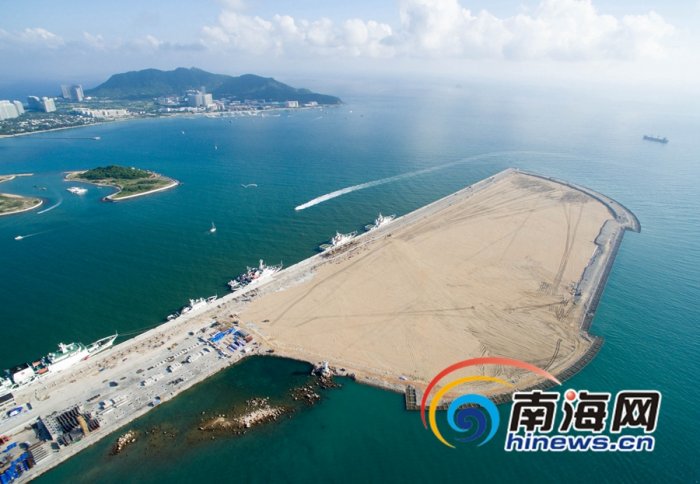 2016年5月30日,鳳凰島國際郵輪港二期陸域回填砂項目已經完工,人工島已初具規(guī)模。