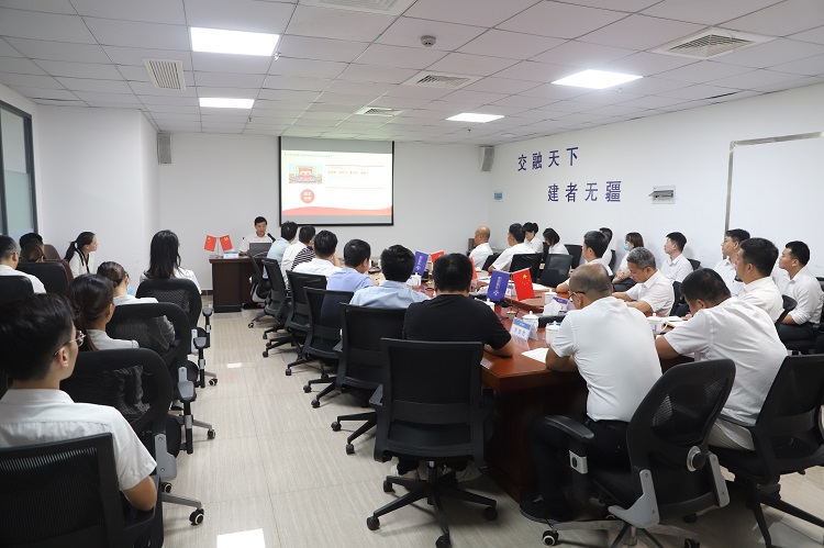 ??谥薪粐d全體干部職工及項目各參建單位負責人參加黨課學習,海口中交國興中層以上干部及項目各參建單位負責人參加座談會。