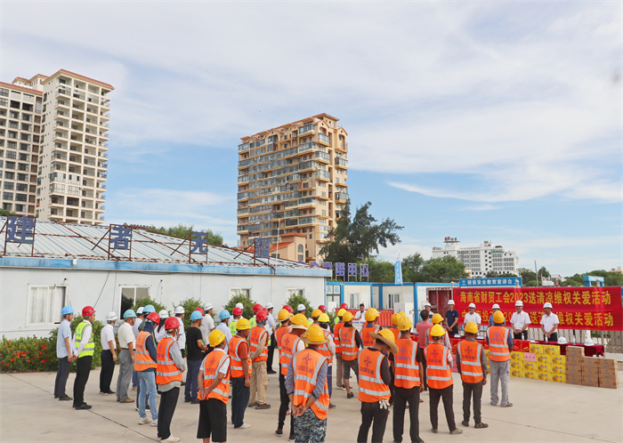 炎炎夏日送清涼,份份關懷暖人心。6月19日,海南省財貿(mào)旅游煙草工會常務副主席童智忠到東方八所中心漁港項目開展送清涼維權關愛活動,持續(xù)深化“我為群眾辦實事”實踐活動,切實做好夏季防暑降溫工作,維護職工安全健康權益。中交海投黨委副書記、工會主席楊凱陪同參加慰問活動。